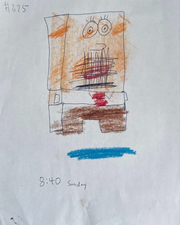Adam Maloney, “Be Spongeworthy”, Series of 1000 8 ½” x 1” Drawings. Mixed Media on Paper, 2022.